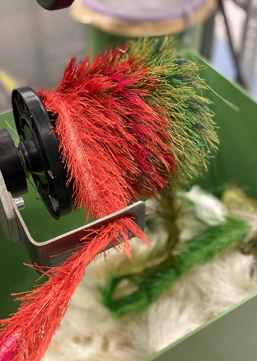 I änden på vissa vävmaskiner blir det en ”snilja” (en fransig remsa av restgarn). Dessa samlar vi upp och säljer till kunder som använder dem till vävning, stickning, virkning m.m.
