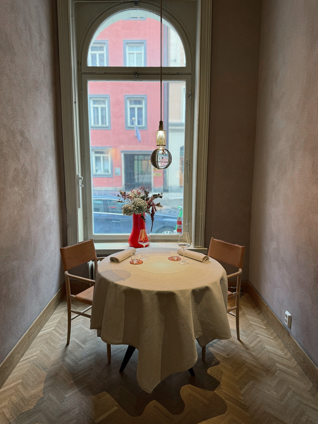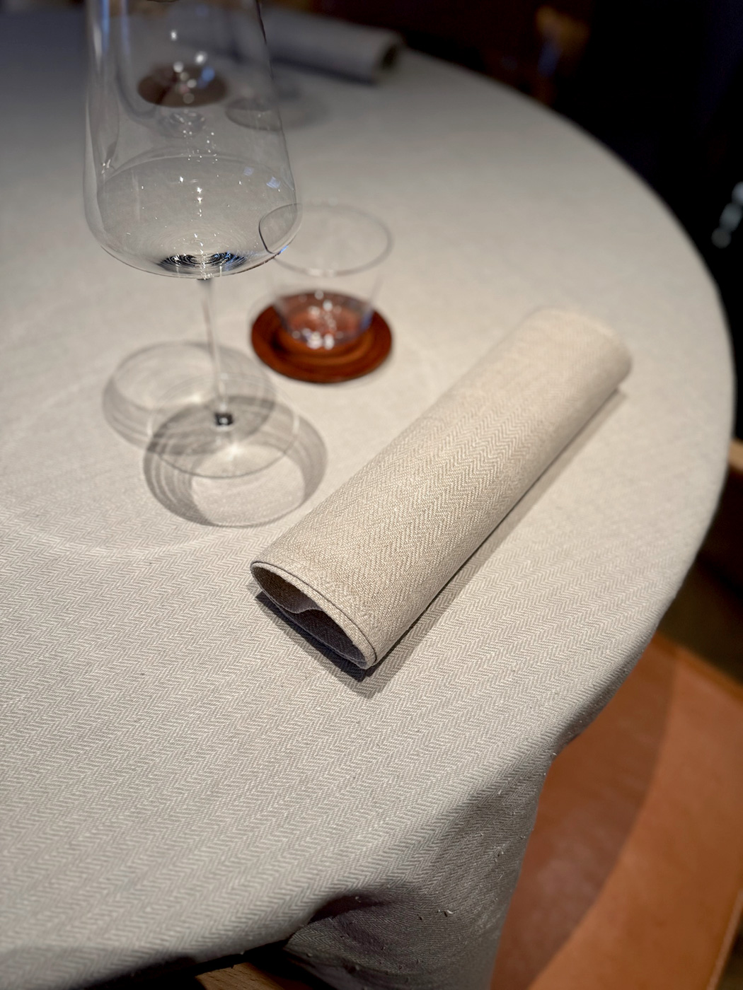 Petri använder vår linneduk Rödven i vitt, tillsammans med matchande servetter i ett behändigt format om 35 × 50 cm – perfekta att lägga i knät och lika vackra i handen som i användning. Den levande strukturen i hellinnet och det klassiska mönstret speglar restaurangens egen filosofi: få men genomtänkta detaljer, där kvalitet och känsla får bära upplevelsen.