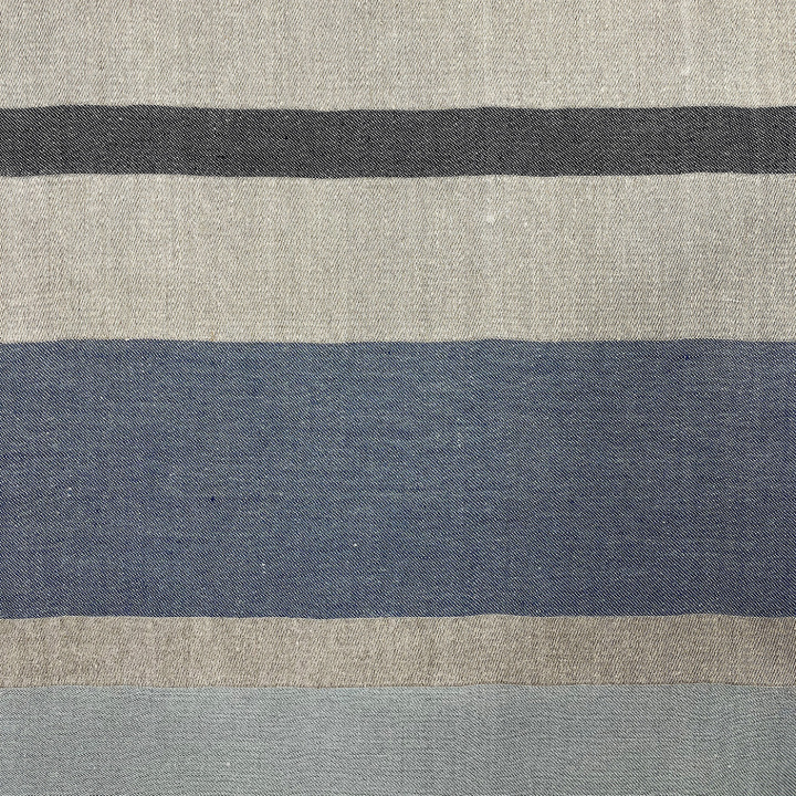 En bred och härlig löpare som tar för sig. Fin på ett bord som man inte vill dölja men ändå ha en duk på. Vävd i satin i en fantastisk kvalitet med oblekt varp och breda kulörta ränder. För att riktigt komma till sin rätt bör den vara lång och helst gå ner över bordets kortsidor. Finns även i bredden 160cm som duk. Tyget krymper ca 5% efter tvätt. 100% Lin