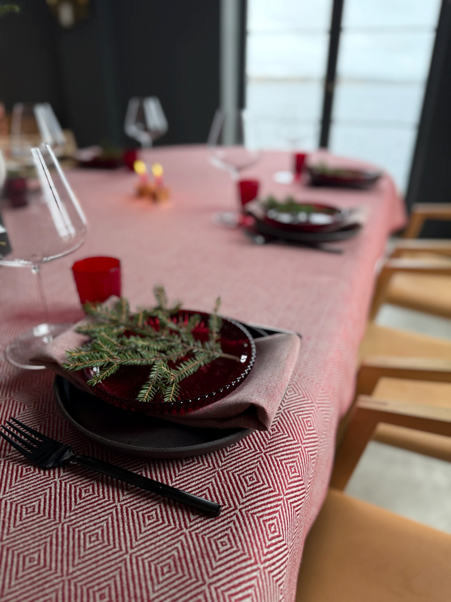 Men för den som längtar efter färg och fest är vår klassiska julduk Rutig Strandråg ett självklart val. Det tydliga rutmönstret och de klara julfärgerna ramar in bordet med en känsla av tradition, generositet och högtid.